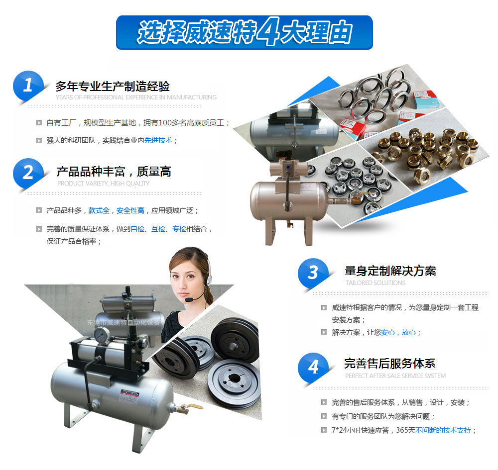 威速特自動(dòng)化設(shè)備有限公司多年來(lái)致力于氣動(dòng)設(shè)備省力改良。主要銷(xiāo)售自動(dòng)化設(shè)備、通用機(jī)械設(shè)備、工業(yè)設(shè)備及配件、氣動(dòng)設(shè)備及配件、五金機(jī)電產(chǎn)品等。主要產(chǎn)品有空氣增壓泵、氣動(dòng)增壓泵、氣動(dòng)增壓閥;儲(chǔ)氣罐;錐套式皮帶輪;電子排水器、空氣脫水器、觀(guān)油鏡、油標(biāo)、W962底座、油封、彈簧式安全閥、油路清洗劑、……[查看詳請(qǐng)]